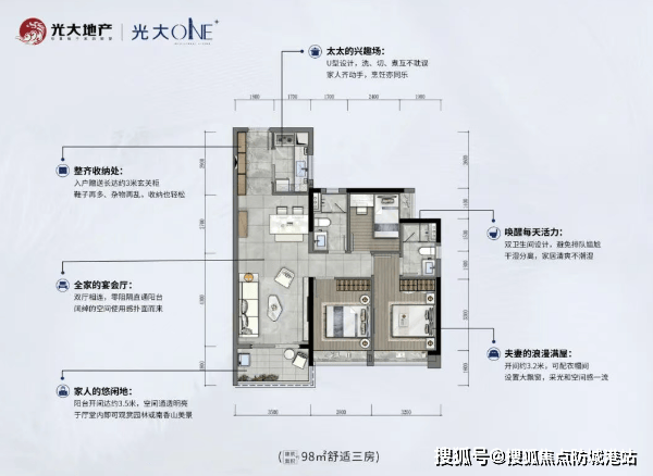 光大 ONE+ 的从力户型为九十八平方米的三房取一百一十七平方米的四房。这两款户型均采用了“全从套”设想,这正在同面积段的产物中极为稀有。这种设想充实考虑了多代同堂家庭的糊口习惯,避免了迟早高峰利用卫生间的尴尬,提拔了每一位家庭的栖身取舒服度。无论是父母、夫妻仍是孩子,都能具有属于本人的私密空间,互不干扰,协调共处。